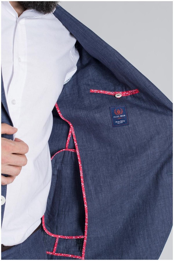 Unikleurig 100% linnen colbert van het merk Plusman met een enkele rij sluiting (single breasted) met 2 witte knopen. Dit linnen grote maten jasje is voorzien van modieuze contrasten in de kraag en aan de binnenkant. Tevens heeft het diverse (klep)zakken aan de binnenkant en buitenkant. Het is ideaal te combineren met een jeans, maar is ook geschikt voor een wat formelere kleedstijl.
