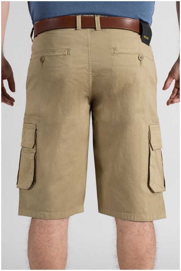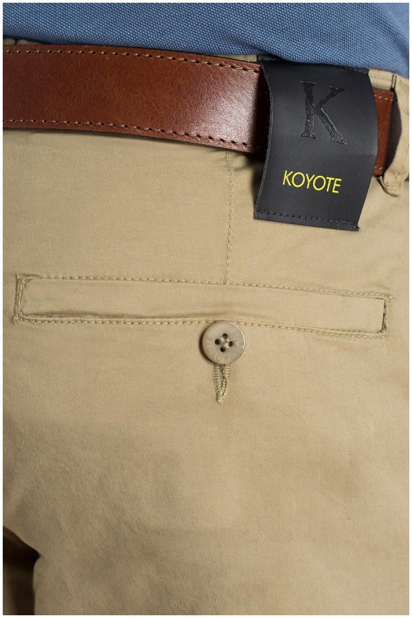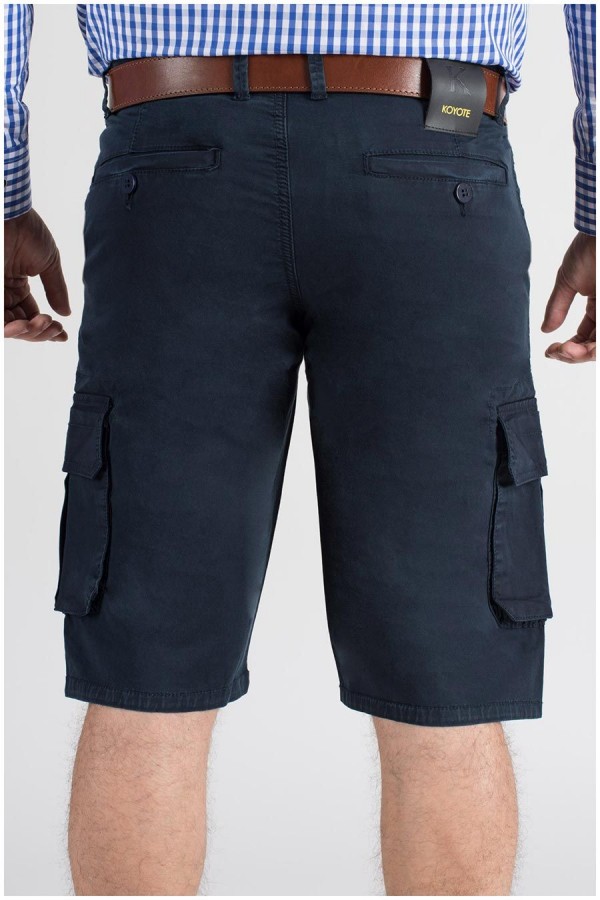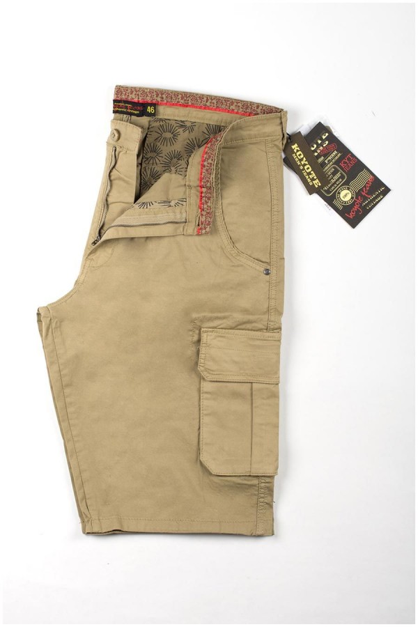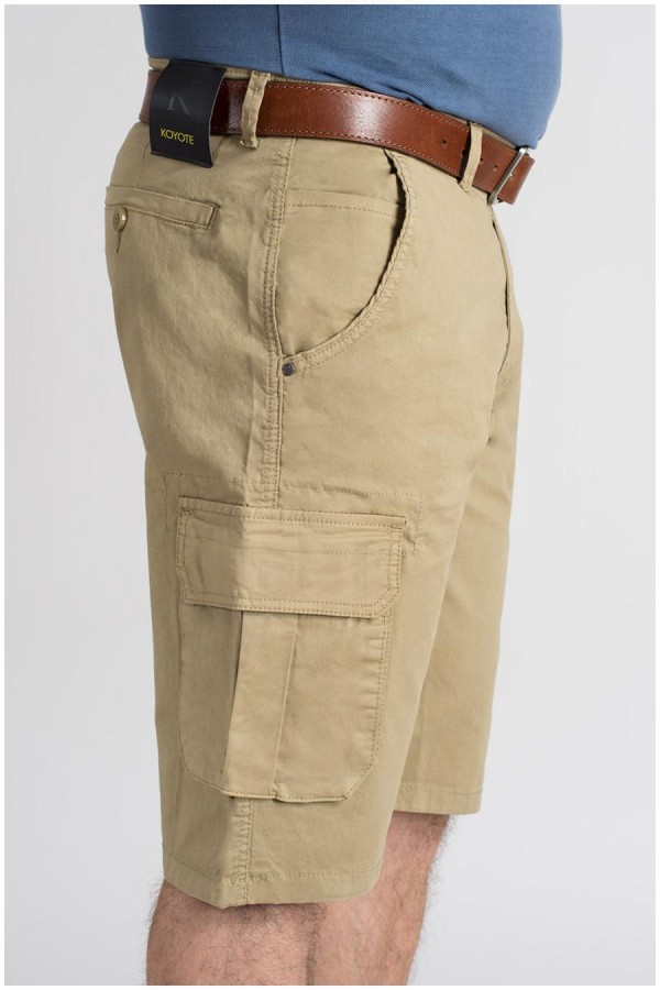 Unikleurige korte broek van van het merk Koyote met grote cargozakken op de pijpen. Verder is deze cargobermuda, in 5-pocket model, ook nog voorzien van steekzakken en achterzakken. Deze short is gemaakt van een katoenmix met elastaan en daardoor elastisch en heerlijk soepel en zacht.