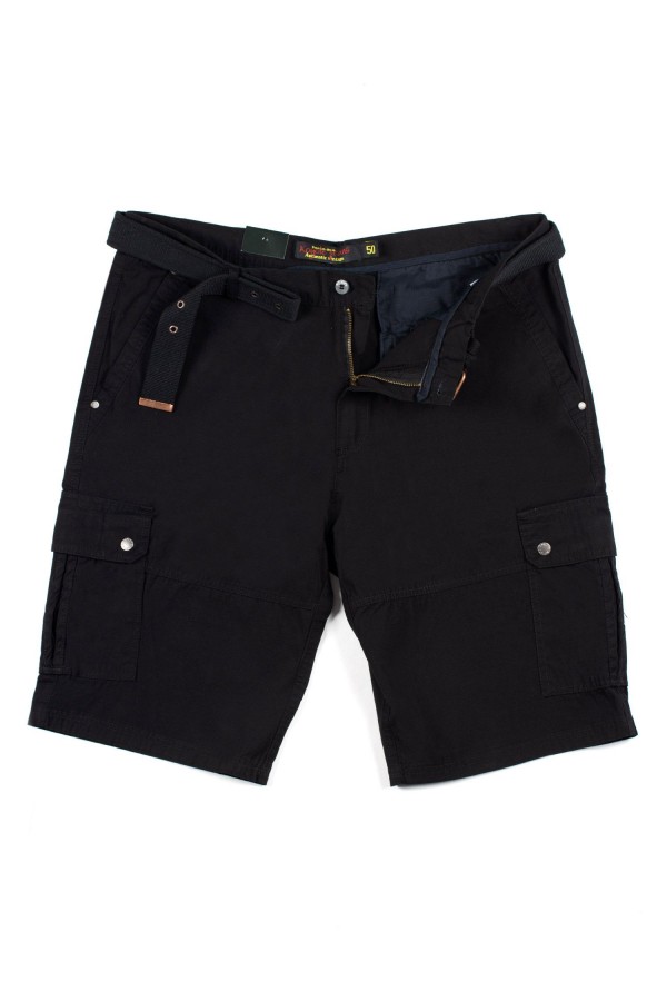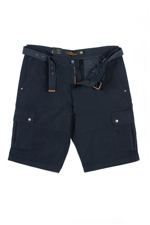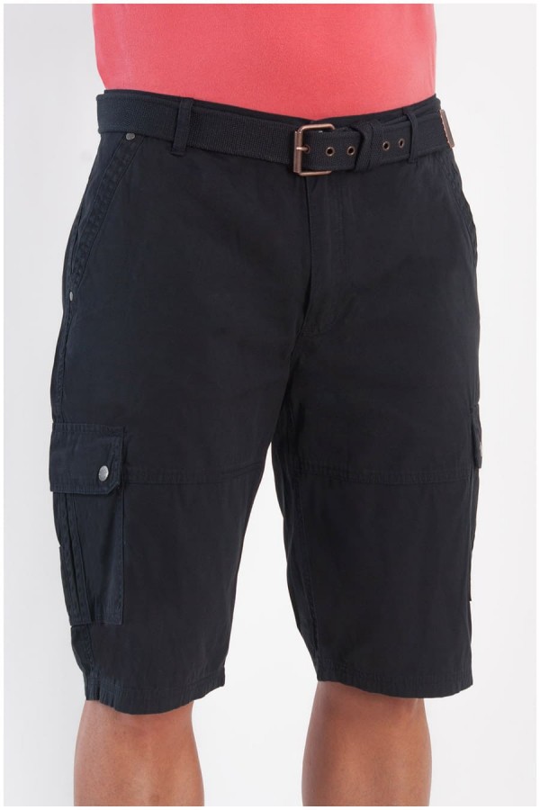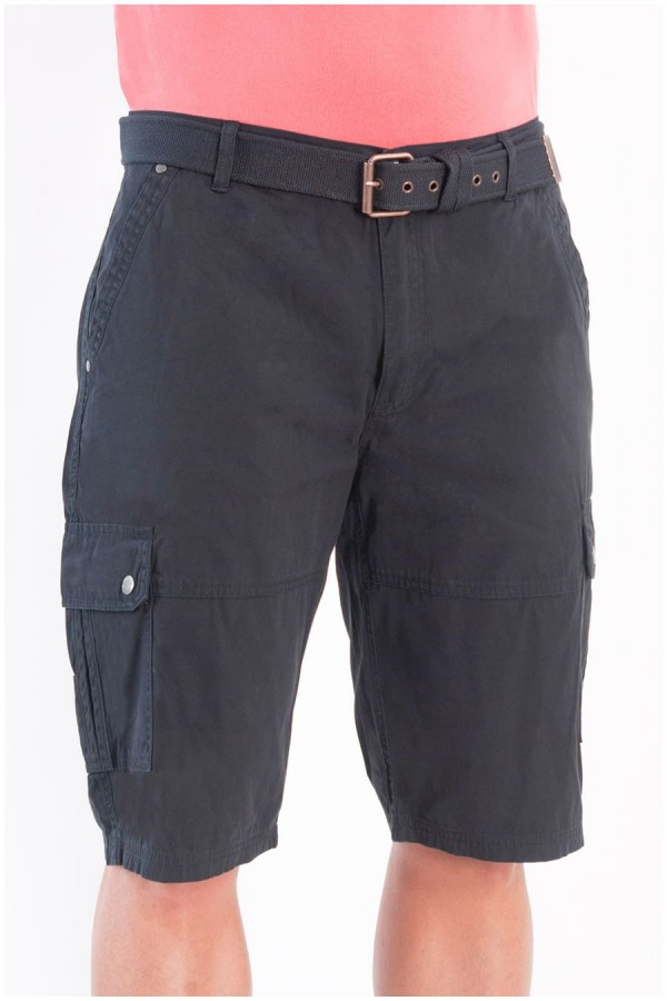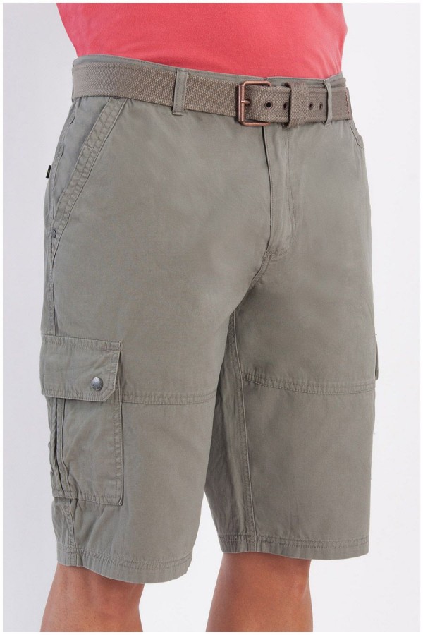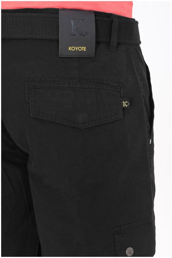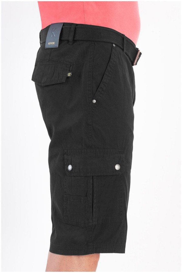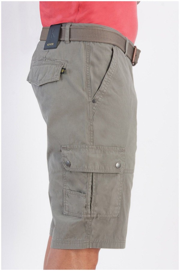 Uni cargo bermuda van Koyote. Deze short, gemaakt van 100% katoen, heeft grote cargozakken met een klep met elk 2 drukknopen op de pijpen. Tevens nog diverse andere zakken op de achterkant en zijkant. Deze korte broek wordt geleverd inclusief bijpassende riem.