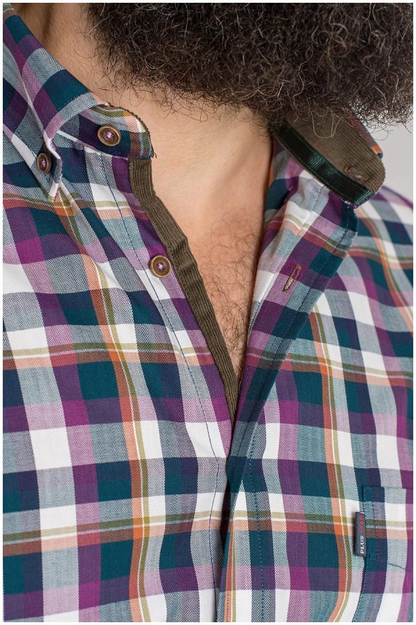Geruiten vrijetijdsoverhemd met extra lange mouwen van het merk Plus Man. De binnenkant van de button-down kraag is afgewerkt met een contrast stof. De manchetten en knopenlijst hebben dezelfde contrast stof. Het overhemd heeft op de linkerborst een borstzakje.