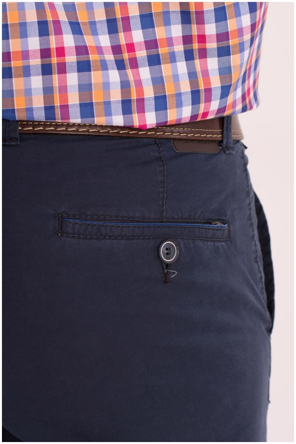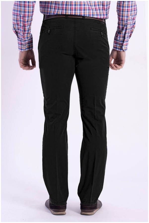 Deze elastische COLD-BLACK CHINO van Club of Comfort warmt niet op in de zon en beschermt bovendien tegen UV stralen! Eindelijk kunt u dus ook op warme dagen lekker zwart dragen! Deze twill-stof is gemaakt van een nieuwe soort katoen, met extra stretch, een hoog comfort en duurzaamheid. In het rechter zakje bevindt zich nog een geheim extra zakje met een rits.