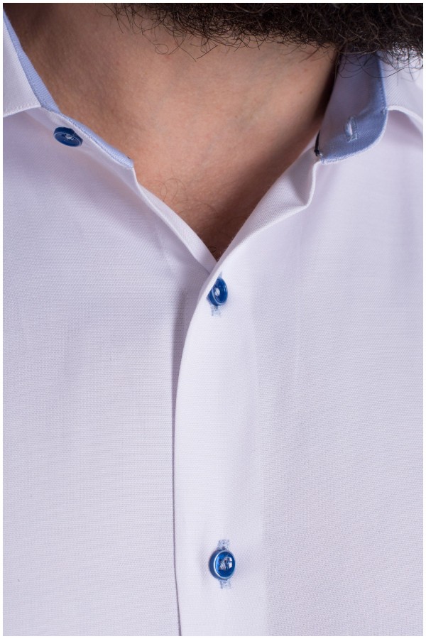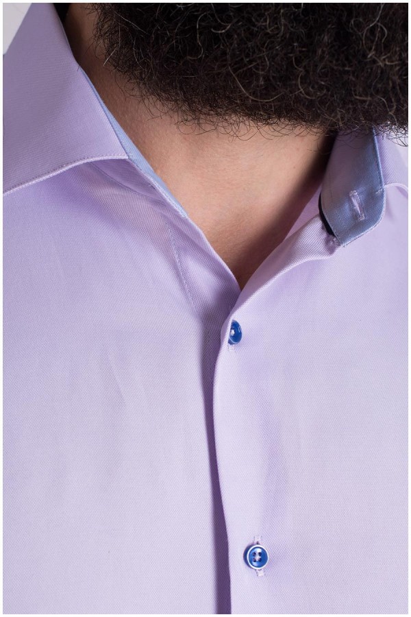 Uni lange mouwen dress overhemd van het merk Plusman. Dit business shirt heen een aan de binnenkant van de kentkraag een contraststof. De geweven katoenmix heeft een structuurtje.