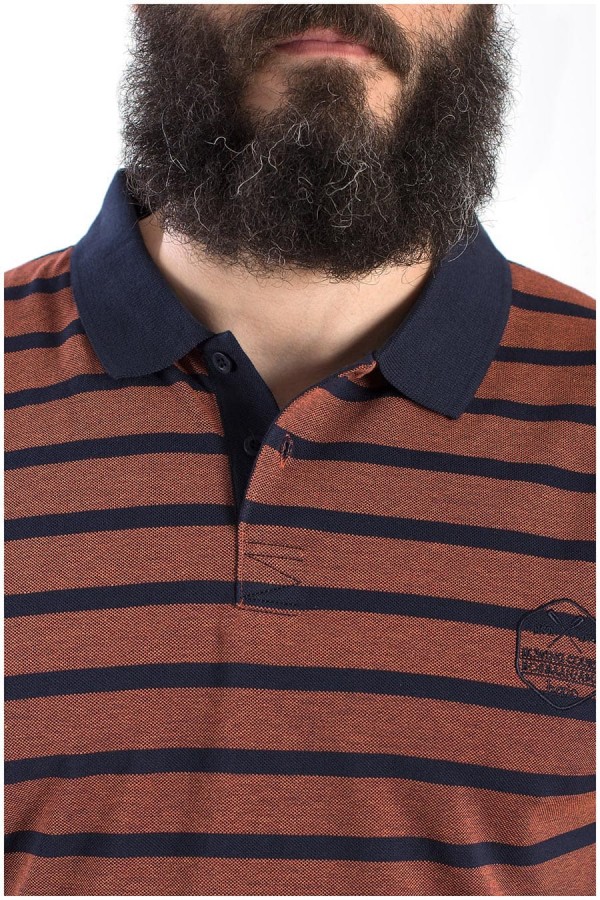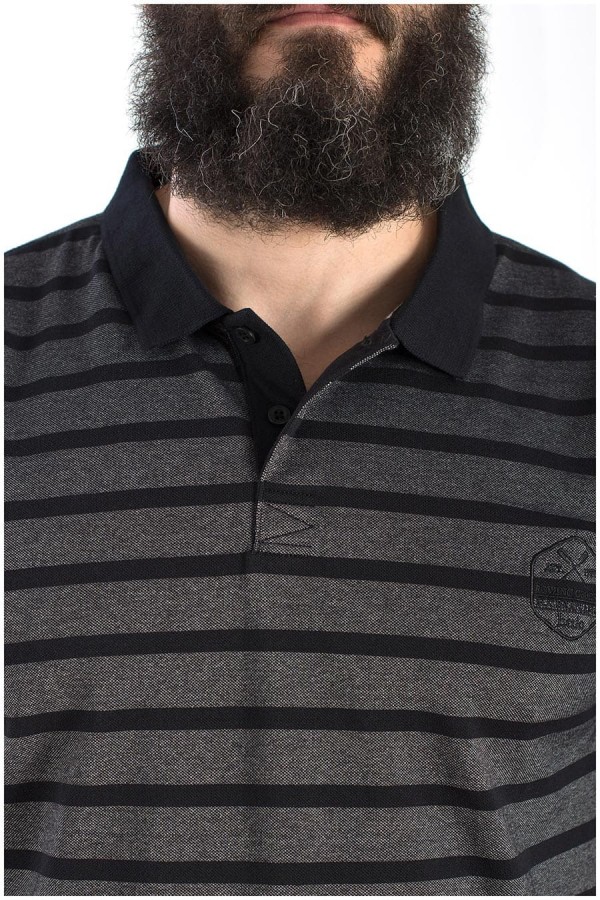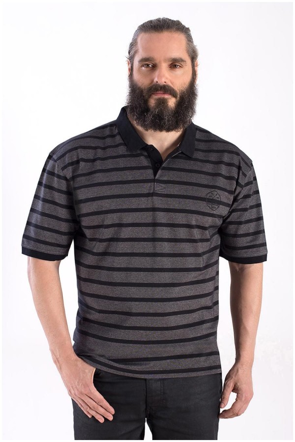 Gestreepte korte mouw polo van het merk Hajo. Polokraag met 2 tonale knoopjes. Door het gebruik van 5% elasthan in de stof van deze polo is de polo zeer elastisch en daardoor zeer comfortabel tijdens het dragen. Kleine tonale borduur op de linker borst.