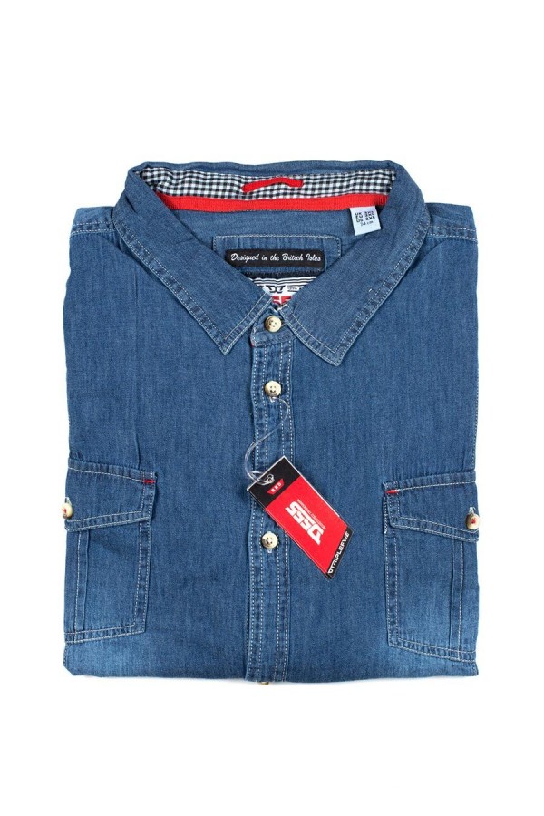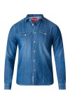 Vintage jeansoverhemd met extra lange mouwen en met 2 borstzakken met kleppen. Dit shirt van D555 (Adcock, 111295) is gemaakt van 100% katoen en heeft gewassen effecten (die van artikel tot artikel licht kunnen afwijken). Contraststof aan de binnenkant van de kraag.