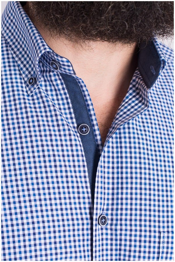 Lengtematen vrijetijdsoverhemd met Vichy ruitje van het merk Plus Man. Dit extra lange shirt heeft een button-down kraag en contrasterend accent langs de knopenlijst en binnenzijde van de kraag.