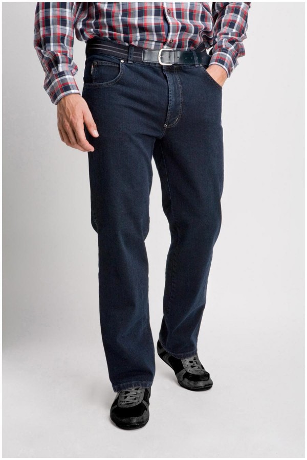 Extra lange elastische jeansbroek in 5-pocket model van het merk Pionier (model Marc). De lengte van het kruis tot de onderkant van de pijp (langs de binnenkant) is 98cm. Deze denim broek is gemaakt van 98% katoen en 2% elasthan waardoor de broek dus stretch eigenschappen heeft. De 11 ounce denim waar de broek van gemaakt is, is sterk en zeer comfortabel om te dragen. Deze jeans wordt geleverd met riem.