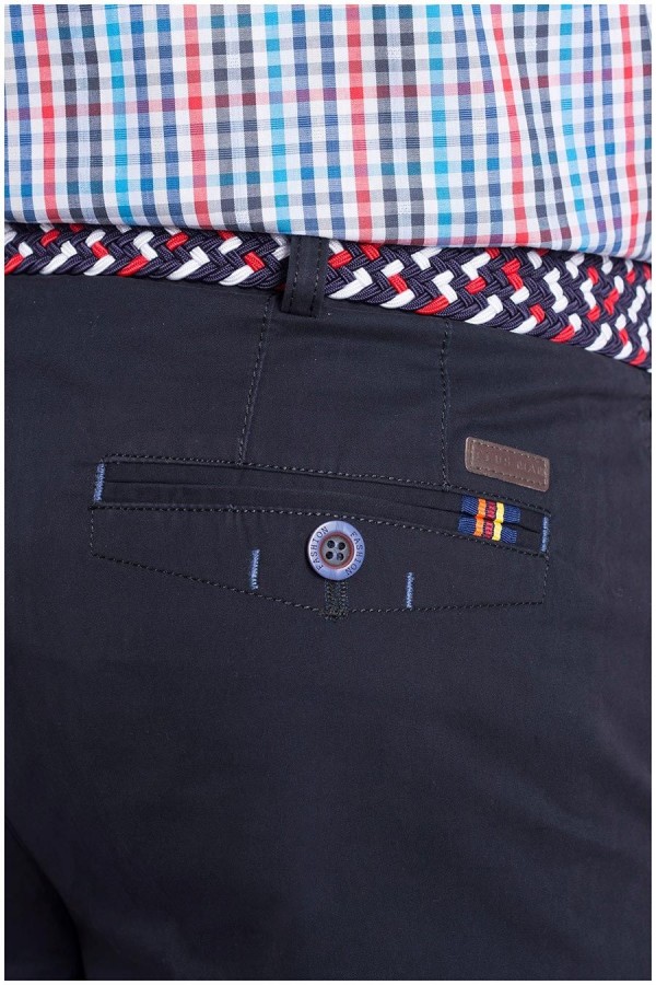 Sportieve, 100% katoenen casual broek met extra lange pijpen van het merk Plusman. Deze 5-pocket broek zonder bandplooi is speciaal ontworpen voor de lange man en is tijdens de productie volgens een speciaal procédé gewassen en is tevens voorzien van diverse kleurrijke contrastdetails zoals contraststiksels en tapes op de diverse zakken. Steekzakken aan de zijkant en achterop twee zakken met knoopje.