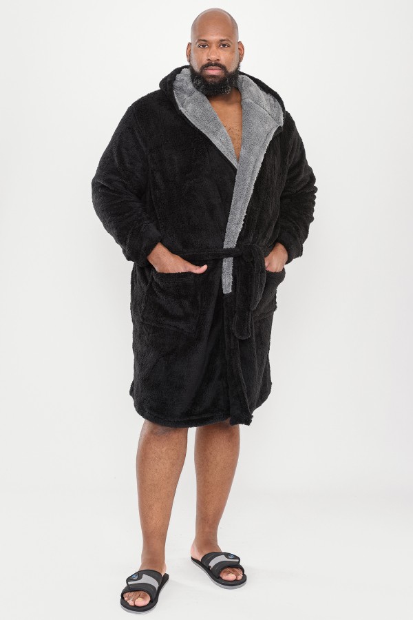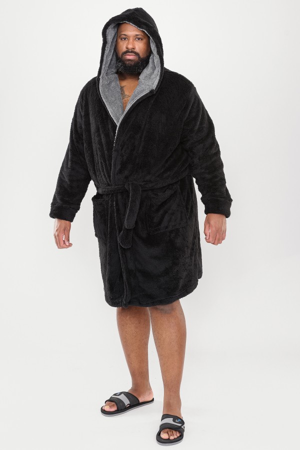 Badjas van het merk D555 (modelnaam NewQuay). De grote maten kamerjas is gemaakt van superzacht en warm materiaal in een fleece kwaliteit. De uiterst comfortabele xxl badjas heeft een ceintuur en een capuchon gemaakt van hetzelfde heerlijk zachte materiaal. De plus size kamerjas is voorzien van zakken en kan gewassen worden in de wasmachine.