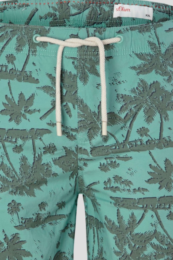 Elastische korte broek van s.Oliver bedrukt met een allover print van palmbomen.