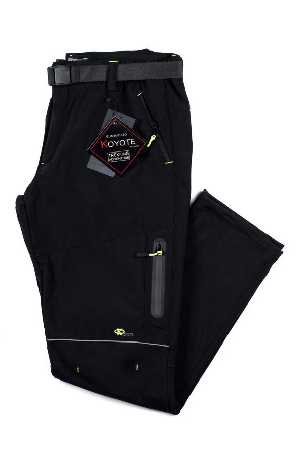 Zeer sportieve elastische outdoorbroek van Koyote met fluoriserende contrastdetails zoals de rits en zakken. Deze broek is speciaal ontworpen voor avontuurlijke sporten, wandelen en andere outdoor-activiteiten. Wordt geleverd met bijpassende riem.