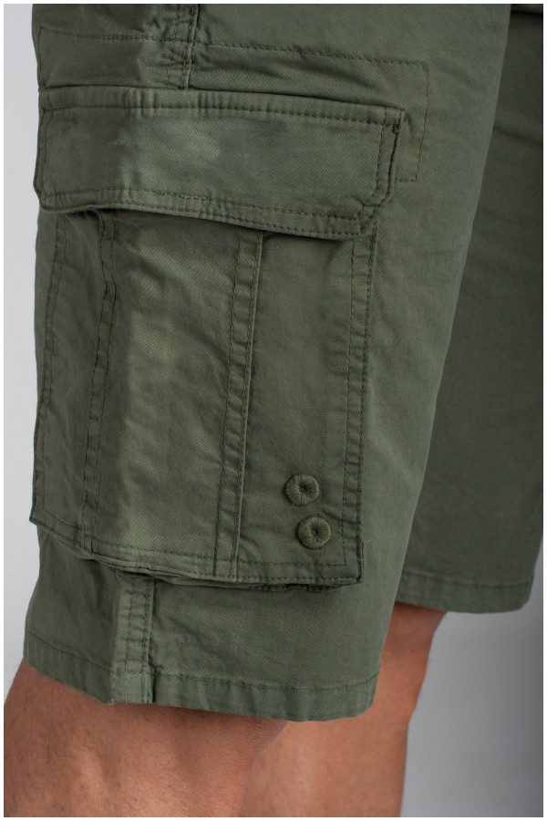 Korte broek van het merk Koyote met cargo zakken. De grote maten cargoshort is uitgerust met diverse zakken. De cargozakken halverwege de korte broekspijpen zijn afgewerkt met een klep en drukknoopjes. De geborduurde oogjes op de cargozakken vormen een modieus detail. De elastische XXL cargobermuda is gemaakt van ademend katoen in de mix met stretchy elasthaan, waardoor de plus size korte broek comfortabel draagt.