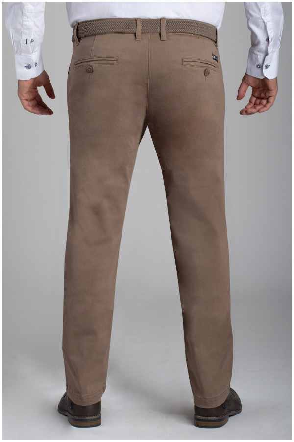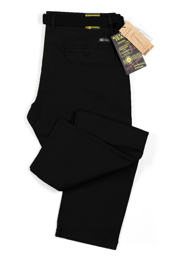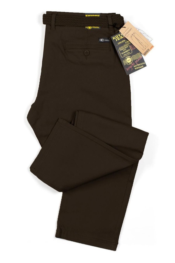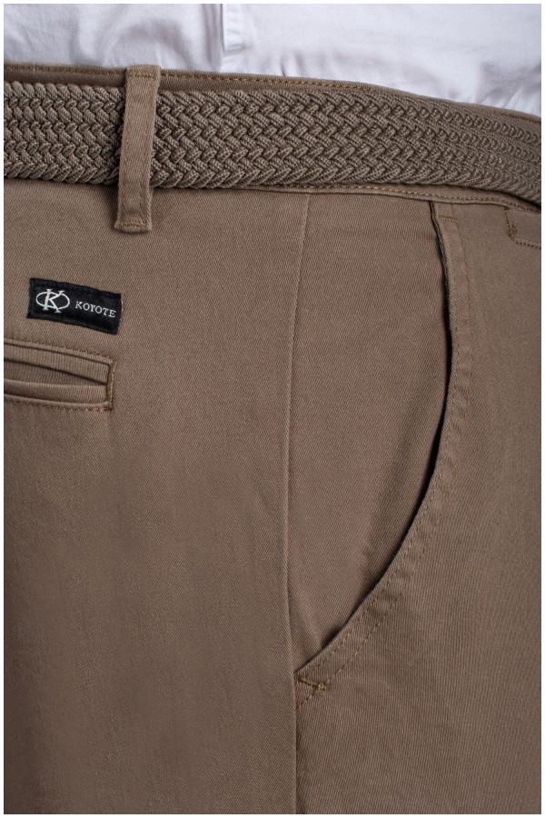 Elastische sportieve vrijetijdsbroek van Koyote. Deze grote maten chino heeft geen bandplooi en is gemaakt van 98% katoen en 2% lycra voor extra draagcomfort. Deze grote maten broek van Koyote wordt geleverd met bijpassende riem!