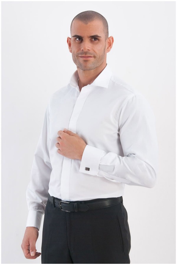 De belangrijkste manier om de maat te verkrijgen is de borst. In de gegeven maten is een tolerantie geaccepteerd van +/-1 cm. De maat van de kraag is belangrijk bij hemden die gedragen worden met de knoop gesloten. De lengte van de mouw is om vast te stellen of deze bij uw armlengte past.