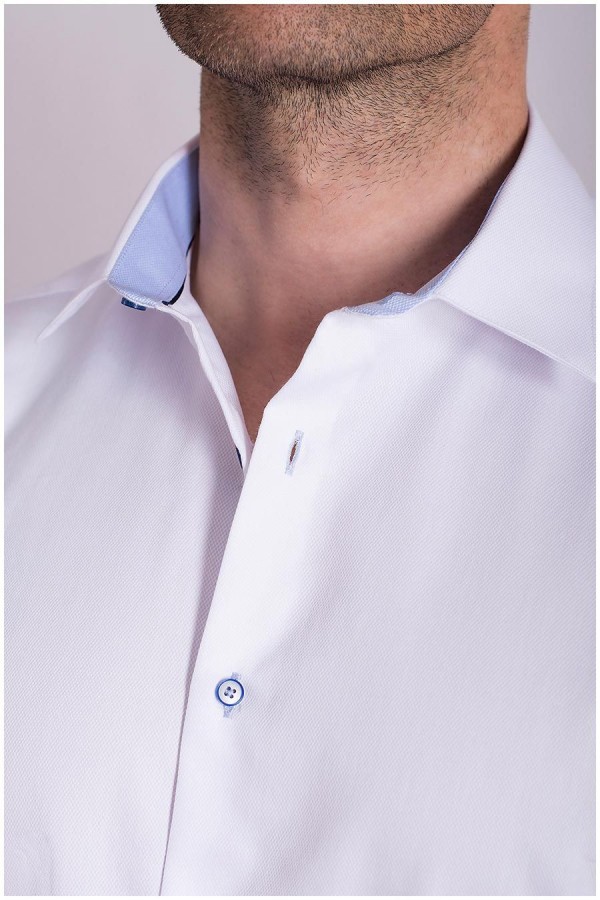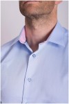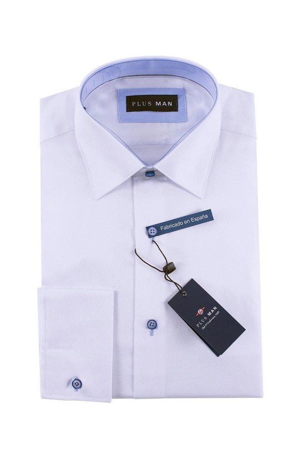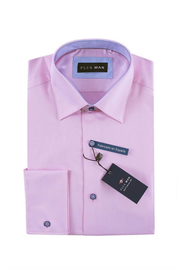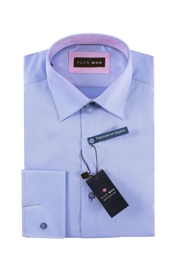 Lange mouw business shirt van het merk Plus Man. Uni kleurig overhemd met een lichte structuur in de stof en met aan de binnenkant van de knopenkraag een tonale band. De manchet heeft 1 knoopje. Met contraststiksels rond de knoopsgaten. Dit dress-overhemd is ook verkrijgbaar in een versie met extra lange mouwen.