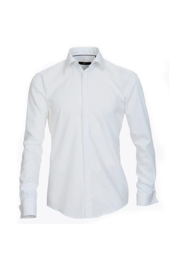 Effen dress overhemd met blinde knoopsluiting van het merk Venti (uit het huis van Casamoda). Dit hemd - ook geschikt als smokinghemd - heeft een slim fit model en is voorzien van dubbele manchetten, geschikt voor het gebruik van manchetknopen. Gemaakt van 100% katoen met een speciale 'strijkvrije' finish voor extra gemak.