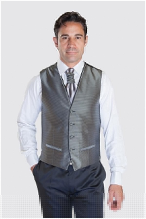 Chique zilverkleurige gilet van het merk Plusman. Het grote maten gilet is zeer geschikt voor feestelijke gelegenheden zoals een bruiloft of communie of andere feestelijke ceremonies. Het gilet heeft een enkele rij knoopsluiting met 4 stoffen knopen. De stof van het gilet heeft een klein structuurtje voor een extra feestelijke uitstraling.