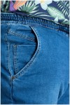 Zeer sportieve en elastische jeans van het merk Koyote met een elatische tailleband die door middel van koordje ingesteld kan worden. De grote maten spijkerbroek is uitgevoerd in een 5-pocket model en heeft opgestikte stukken op de achterkant boven de achterzakken als extra modieus detail.