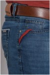 Denim stretchbroek van het merk Koyote in 5-pocket model. Deze sportieve spijkerbroek heeft diverse modieuze details zoals een contrastkleurige band aan de zijzak en contrastkleurige stiksels op de achterzakken.