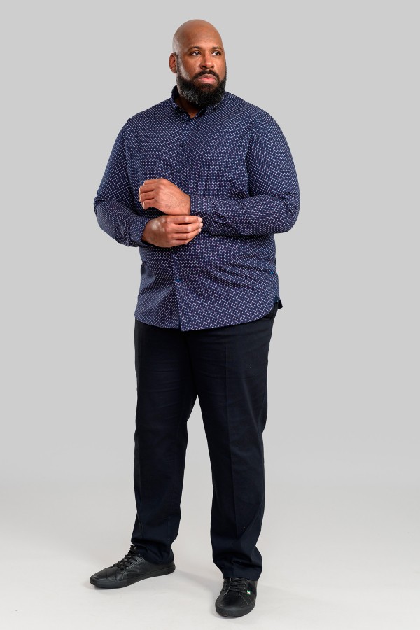 Overhemd met modieuze allover microprint. Dit casual shirt uit de grote maten collectie van D555 is gemaakt van 100% katoen. De “concealed” button-down is niet zichtbaar en geeft een stijlvolle twist aan het plus size vrijetijdshemd. De binnenzijde van de knopenlijst is afgewerkt met een contrastband en een merklabel.