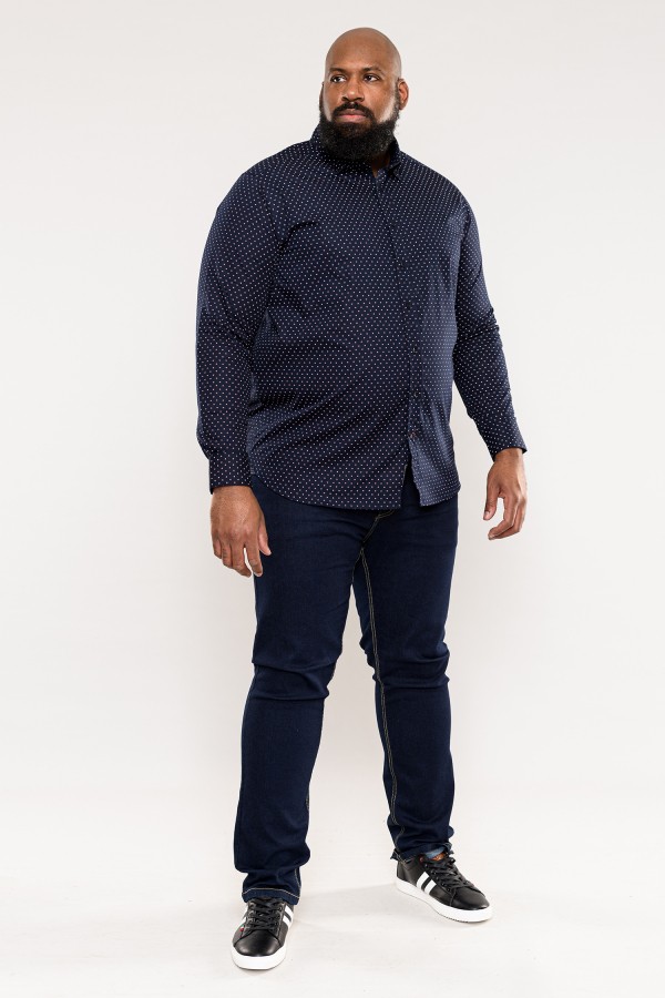Lange mouw overhemd met all-over print van het merk D555 (artikelnummer Adelaide). Dit grote maten overhemd van 100% heeft een speels patroon van contrasterende stoffen aan de binnenkant van de kraag.