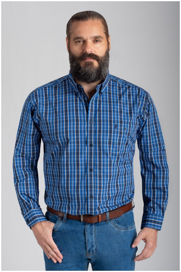 Ruiten lange mouw overhemd van het merk Forestal. Het grote maten vrijetijdsoverhemd heeft een button-down kraag en een borstzakje met logoborduur. De binnenkant van de kraag en van de manchetten zijn afgewerkt met een uni contraststof.