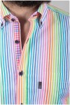 Plusman korte mouw overhemd van 100% katoen met regenboogstrepen.