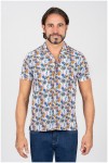 100% Katoenen Plusman korte mouw overhemd bedrukt met tropische print.