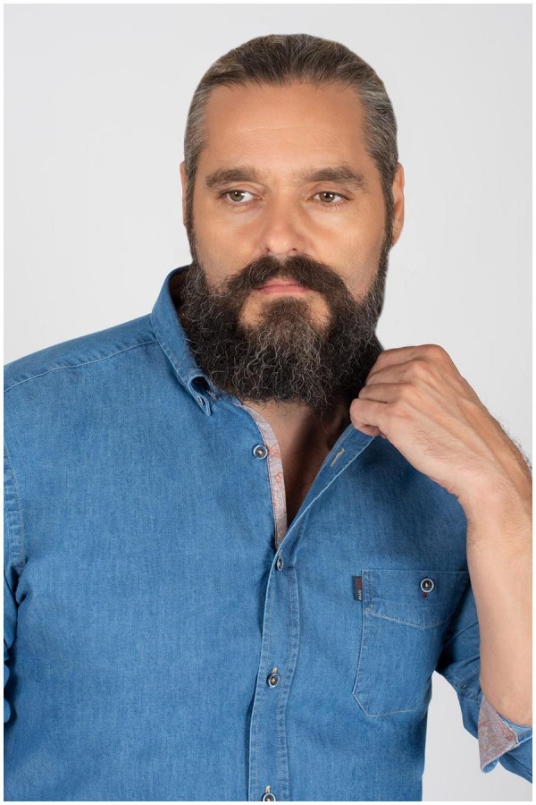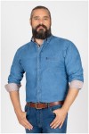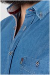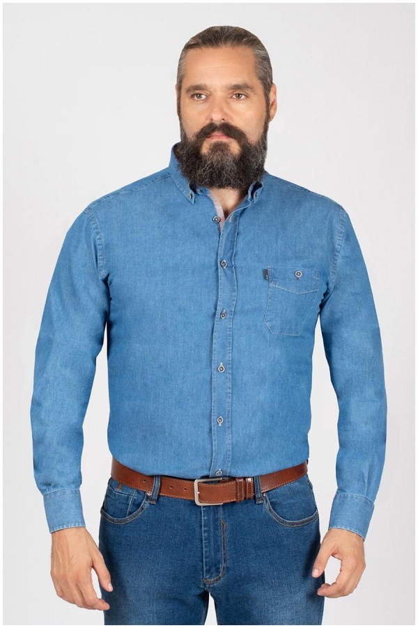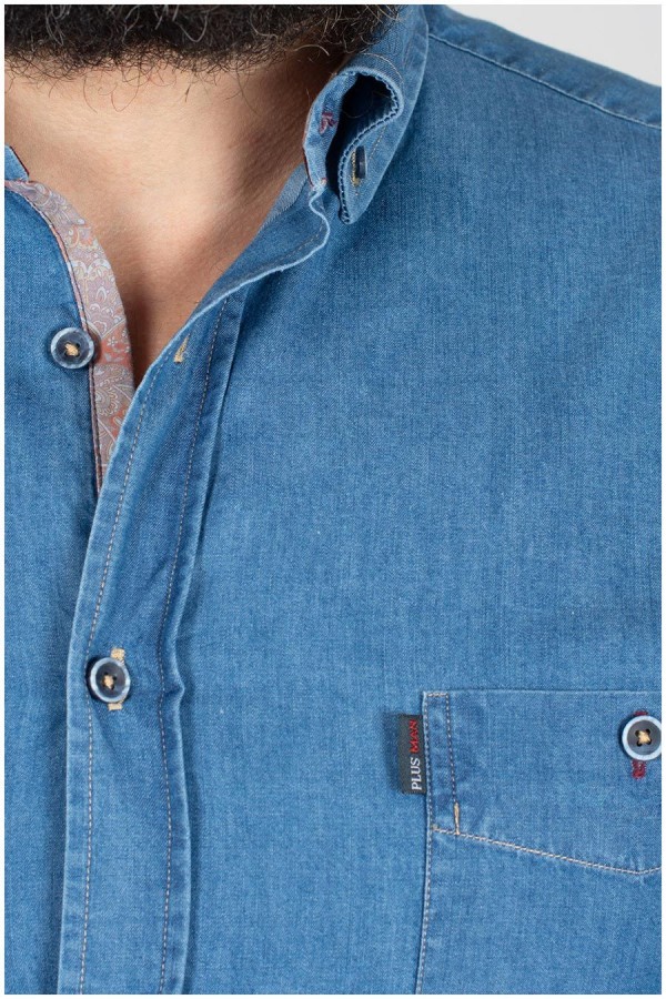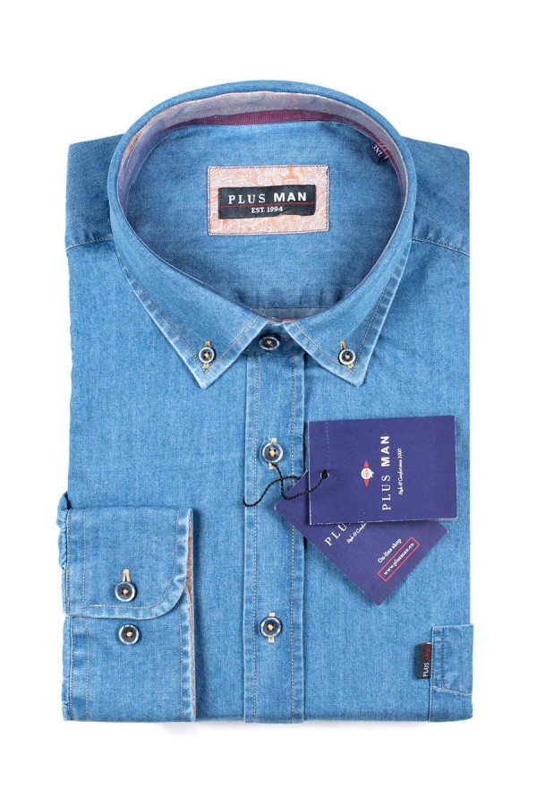 Denim shirt met lange mouwen van het merk Plusman. Dit jeanshemd heeft een borstzakje met knoop, button-down kraag en verstelbare manchetten. De kraag en manchetten zijn vanbinnen afgewerkt met een gedessineerde contraststof. Deze is ook toegepast langs de knopenlijst als leuk detail. Het shirt is gemaakt van 100% katoen.