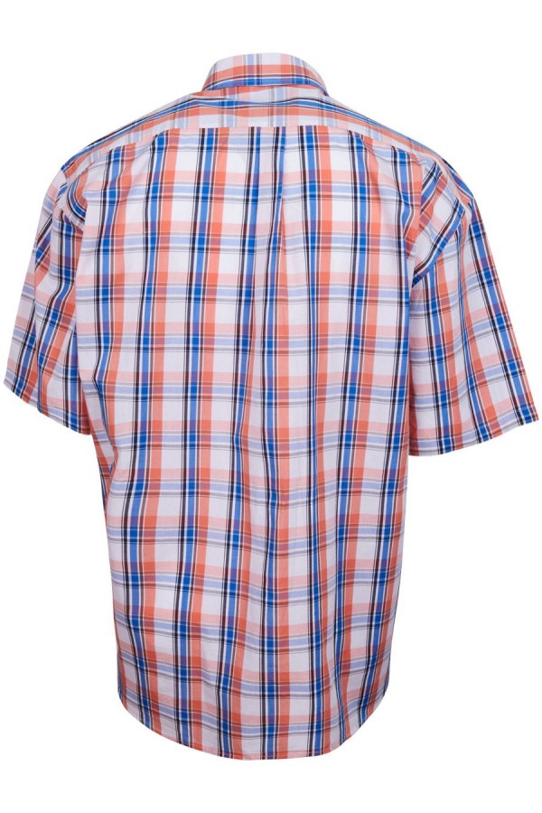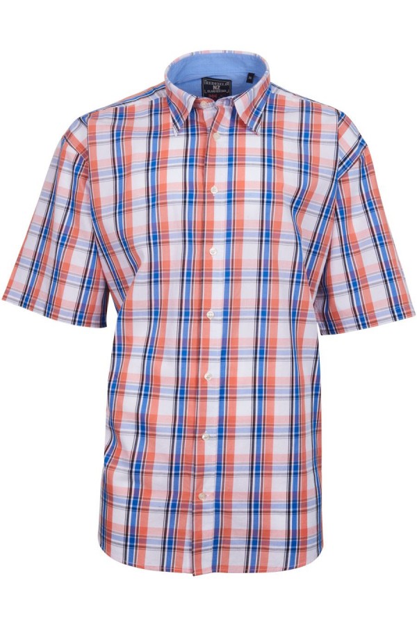 Katoenen korte mouw overhemd van het merk Redfield. Dit ruitjes hemd heeft een normale kraag die aan de binnenkant is afgewerkt met een contrastkleurige stof. Het 100% katoenen hemd is afgewerkt met een label.
