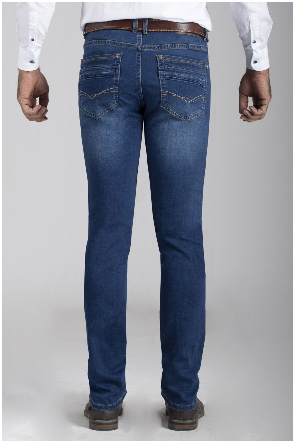 Stretch-jeansbroek van het merk Koyote. Deze grote maten spijkerbroek is gemaakt van een zeer elastische denimstof van katoenmix. De xxl jeansbroek wordt geleverd in een 5-pocketmodel en heeft diverse modieuze details zoals vervaagde stukken op de pijpen en sierstiksels in meerdere kleuren op de achterzakken.