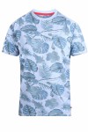 Korte mouw t-shirt van het merk D555 (art.nr. KS60639, Seymour) met allover hawaiiprint van grote bladeren. Dit zomerse grote maten t-shirt heeft een ronde hals met een gekleurde nekband.