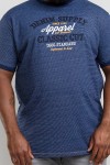 Subtiel horizontaal gestreept korte mouw t-shirt van het merk D555 (art.nr. KS60665, Kody). Dit grote maten t-shirt met ronde hals heeft op de borst een grote meerkleurige borduursel.