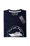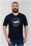 Korte mouw t-shirt van het merk Kitaro. Het grote maten shirt heeft een v-hals hals en een grote print op de borst. De print heeft een nautisch thema en een versleten look wat zorgt voor een stoere uitstraling. Het shirt is gemaakt van 100% katoen en is afgewerkt met een bedrukte contrastband aan de binnenzijde van de hals als modieus detail. Dit t-shirt voert Plusman ook in een .