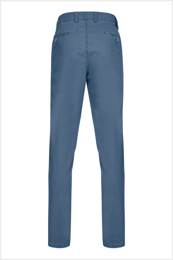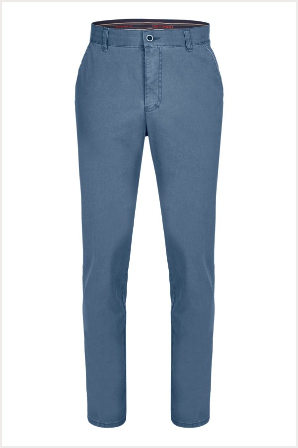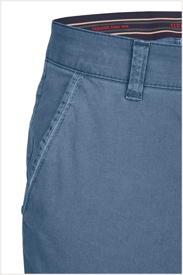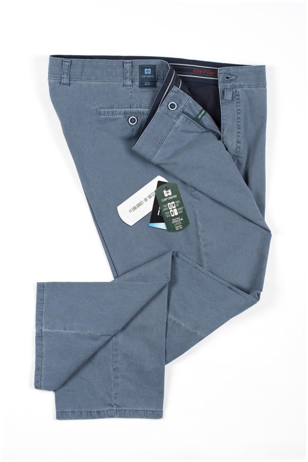 Elastische katoenen vrijetijdsbroek van het merk Club of Comfort (Marvin 6901) met licht microstructuur in de stof en met paspelzakken met knoop achterop. De broek is van een hoogwaardige high-stretch katoen gemaakt en is uitgevoerd met een elastische band met dubbele overhemd- en shirt stopper.