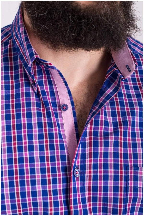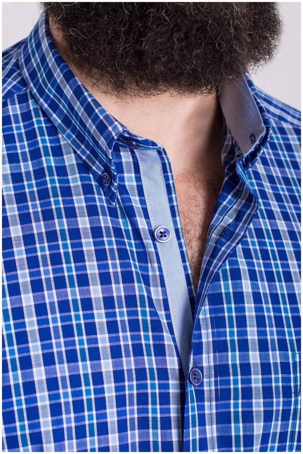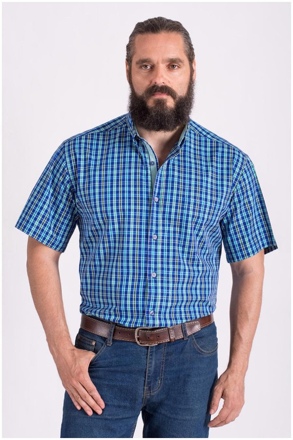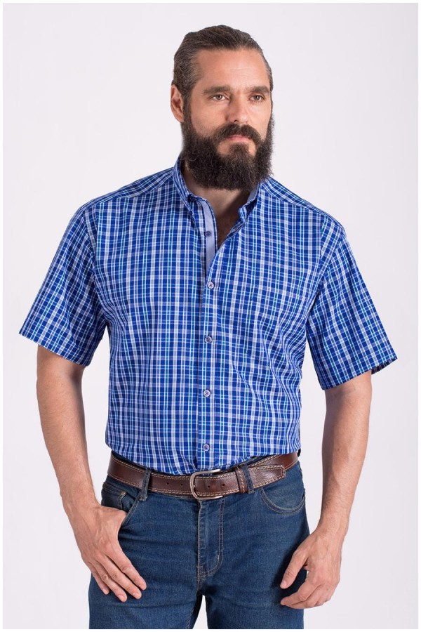 Geruiten Plus Man vrijetijdsoverhemd met korte mouwen en een borstzakje. De button-down kraag en knopenlijst zijn afgewerkt met een tonale uni contraststof. Gemaakt van 100% katoen.