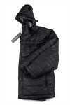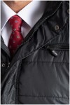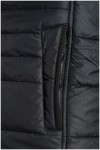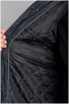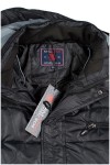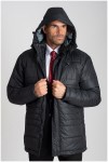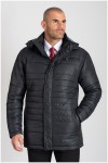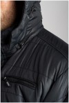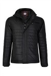 Doorgestikte gewatteerde jas met afneembare capuchon van het merk KAM Jeanswear (art.nr. KBS KV94). De capuchon is gevoerd met contrastkleurige stof en aan te trekken door middel van een koord. De jas heeft een dubbele sluiting met rits en drukknopen. Verder is de winterjas voorzien van twee steekzakken voorop, een ritszak op de borst en twee binnenzakken. Deze jas is ook beschikbaar in lengtematen.