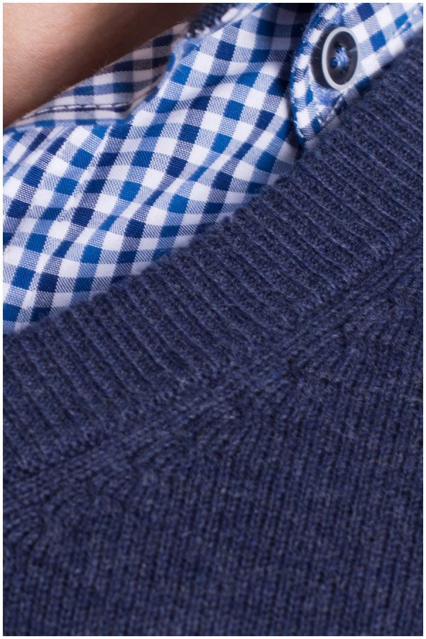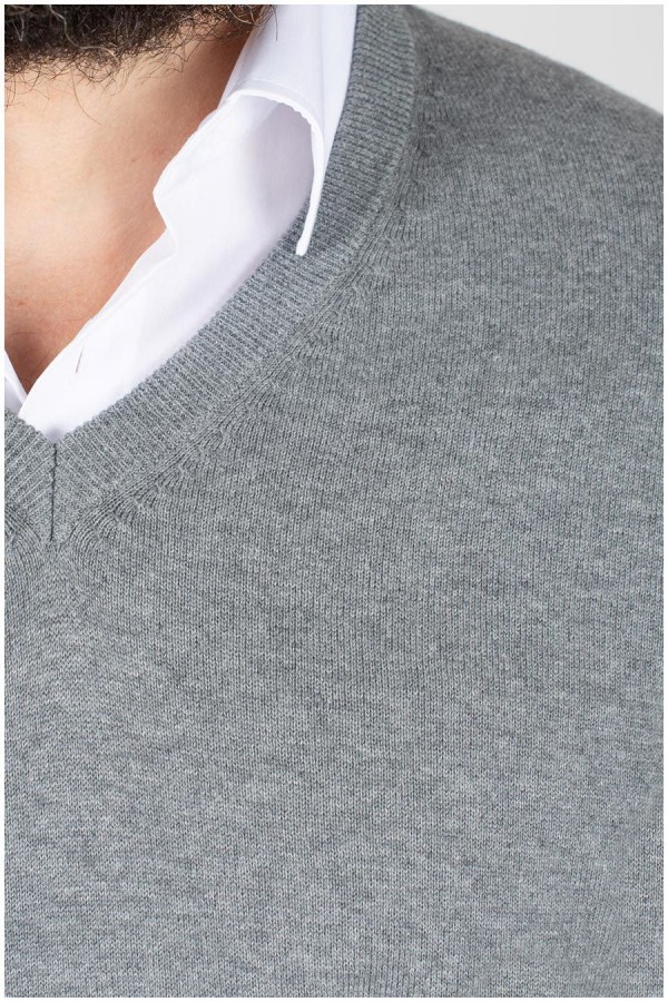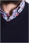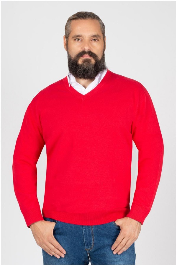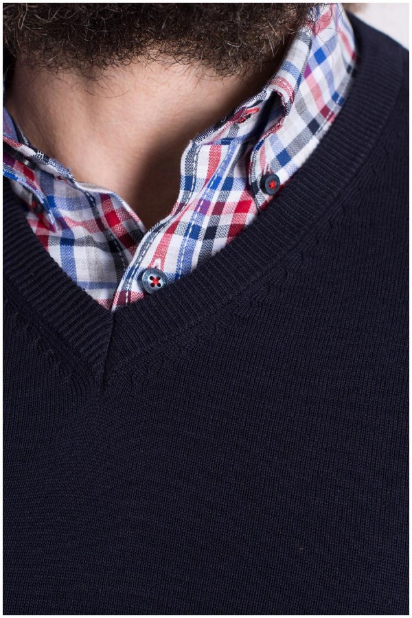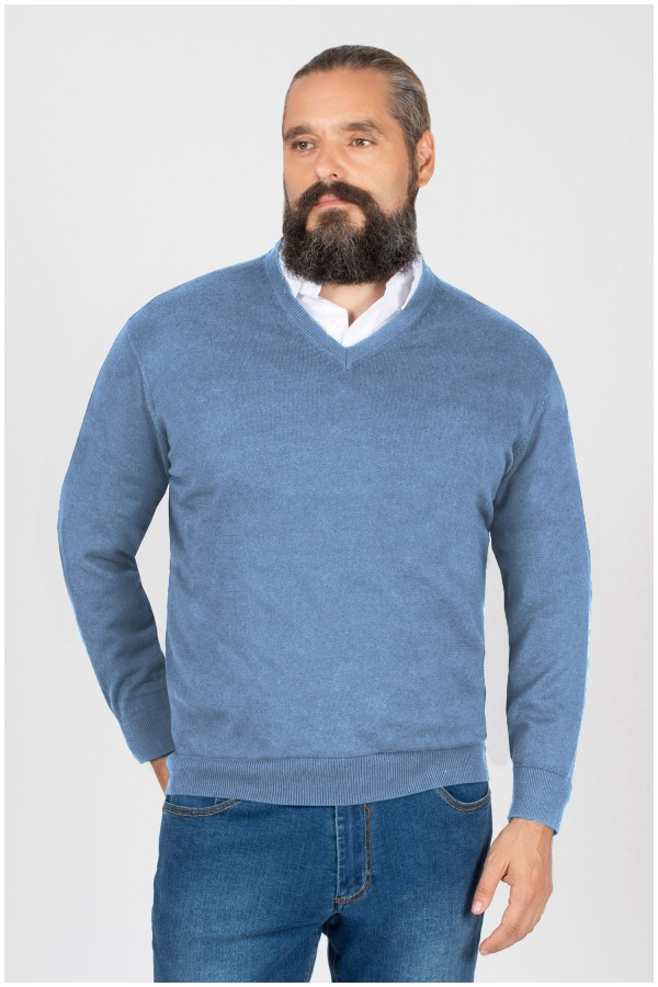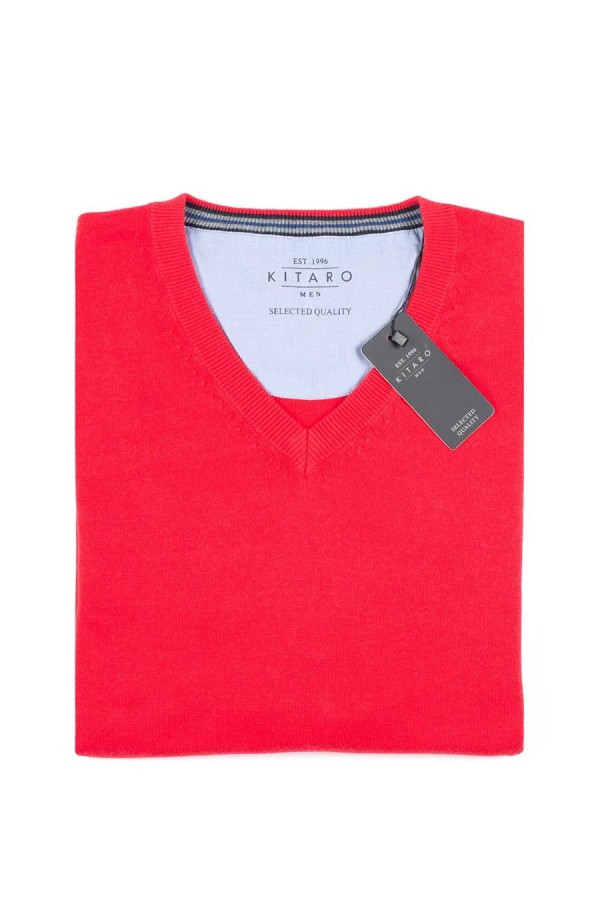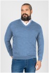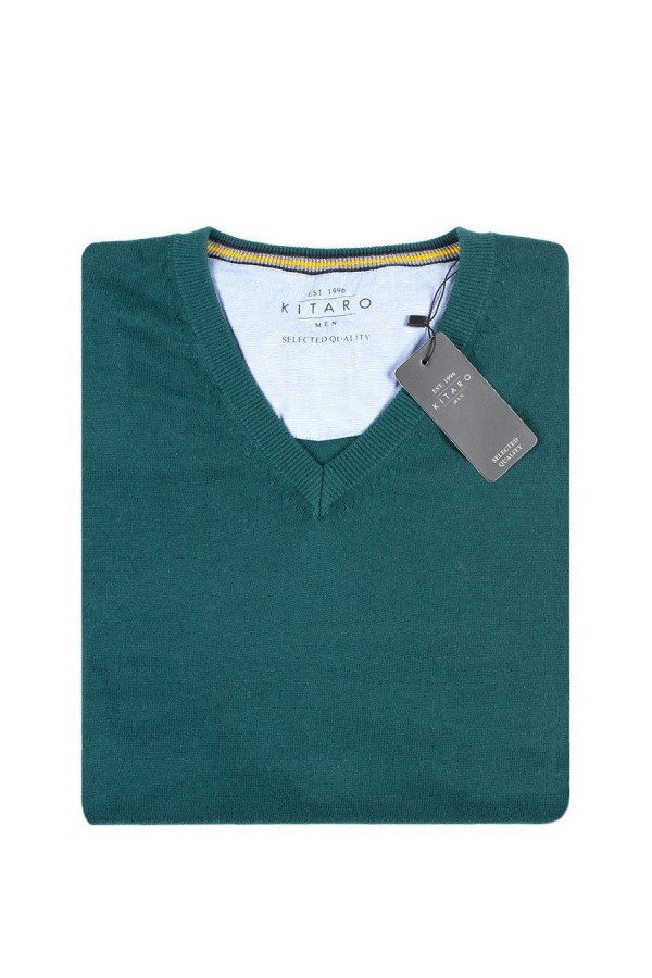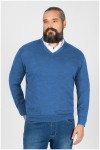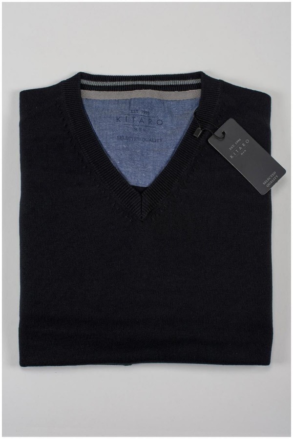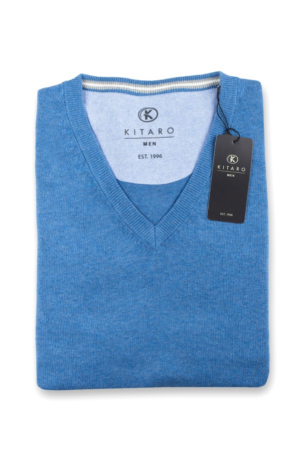 Unikleurige trui met V-hals van het merk Kitaro (art.nr. 69347). De grote maten trui is gemaakt van 100% katoen. Met contraststof met Kitaro-print erop in de kraag. Dit artikel is ook beschikbaar inÂ