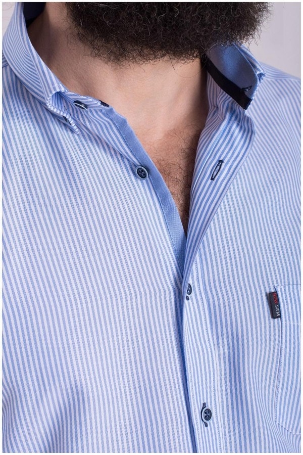 Gestreept korte mouw vrijetijdsoverhemd van Plus Man gemaakt van een hoogwaardige oxford kwaliteit. Button-down kraag. De kraag, mouweinden en knopenlijst zijn afgewerkt met een uni, tonale stof. Borstzakje.