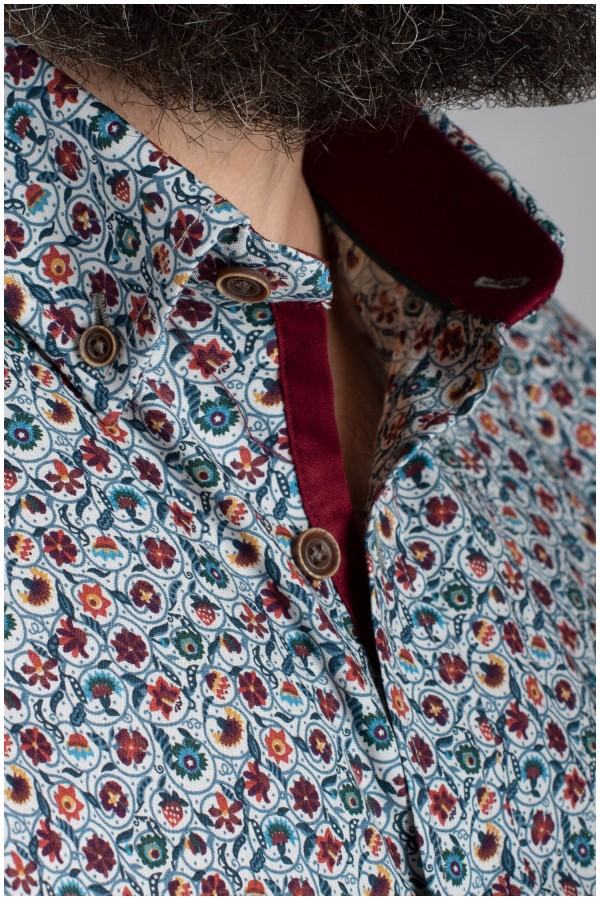 Extra lang overhemd van het merk Plusman met een allover print dessin van diverse kleine bloemetjes en bloemblaadjes. Dit lengtematen overhemd is gemaakt van 100% katoen en heeft een klassieke button-down kraag en contrasten langs de knopenlijst, aan de binnenkant van de kraag en aan de omslag van de manchetten. Dit vrijetijdsoverhemd met extra lange mouwen is ook verkrijgbaar als een overhemd met reguliere maatvoering.