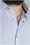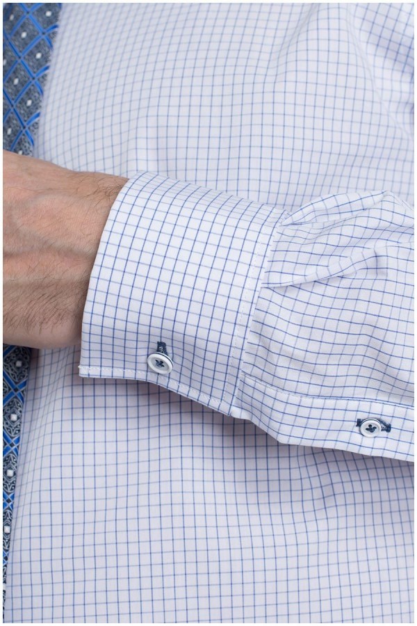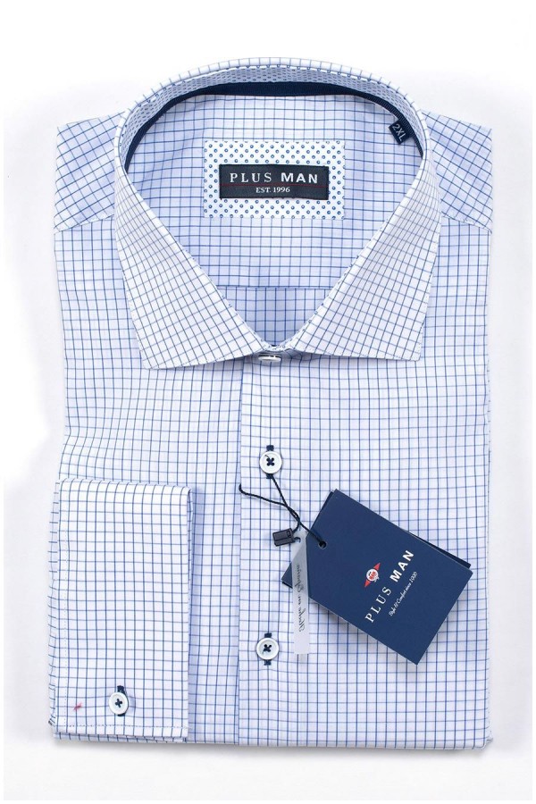 Business overhemd met fijn ruitdessin en extra lange mouwen en ruglengte van het merk Plusman. Dit lengtematen shirt is gemaakt van 100% katoen in hoogwaardige poplin kwaliteit. De kraag is afgewerkt met een gedessineerde contraststof aan de binnenkant en de knoopsgaten hebben een contrastkleurig stiksel.