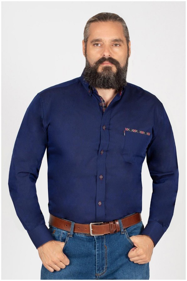 Uni extra lang vrijetijdsoverhemd van het merk Plusman, met button-down kraag. De kraag, de knopenlijst en het borstzakje zijn afgewerkt met een ruiten contraststof. Dit overhemd met extra lange mouwen is speciaal ontworpen voor de lange man en voeren wij ook in een .