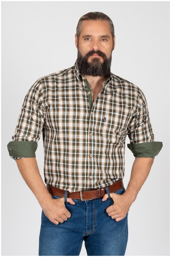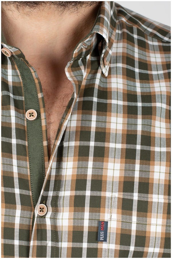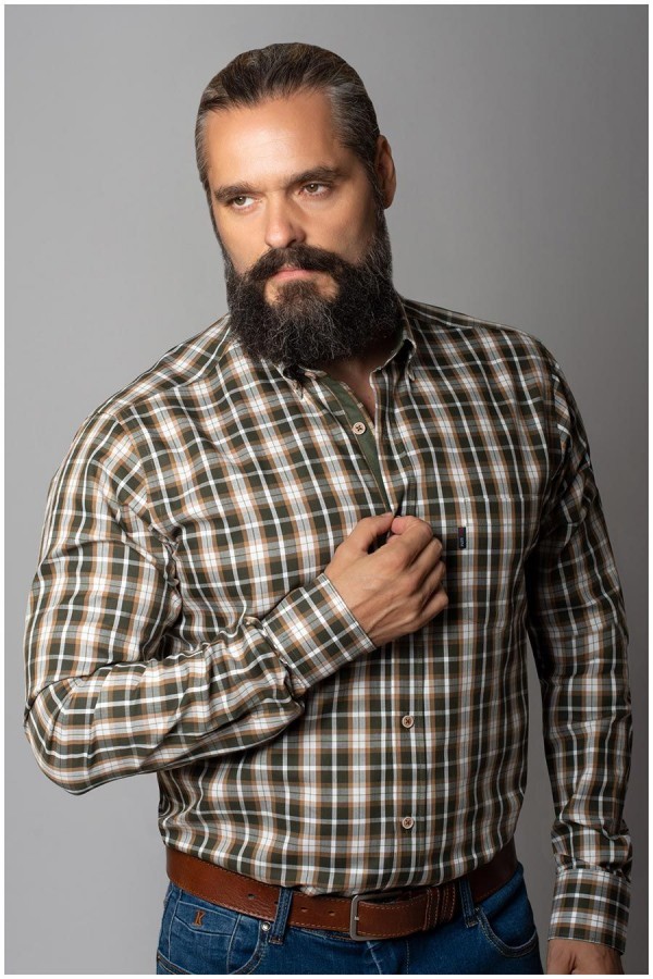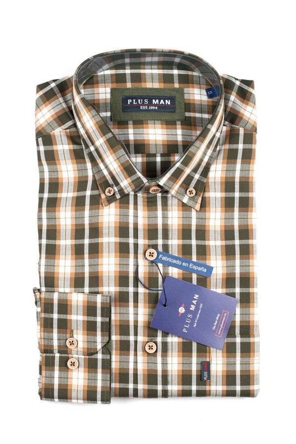 Plusman ruiten casual overhemd met extra lange mouwen. Dit extra lange shirt heeft een button-down kraag die aan de binnenkant is voorzien van een unikleurig contraststof. Deze contraststof komt ook terug bij de manchetten en de knopenlijst. Op de linkerborst bevindt zich een borstzakje.