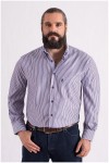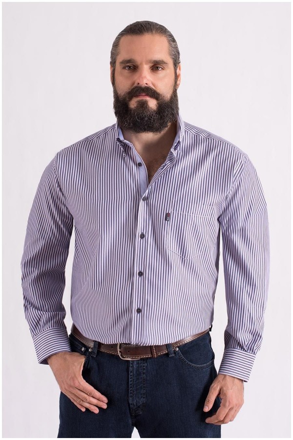 Meerkleurig verticaal gestreept shirt van Plus Man met extra lange mouwen en ruglengte. Dit vrijetijdsoverhemd is voorzien van een borstzakje links op de borst. De button-down kraag is net als de binnenkant van de manchetten en de knopenlijst afgewerkt met een contraststof.