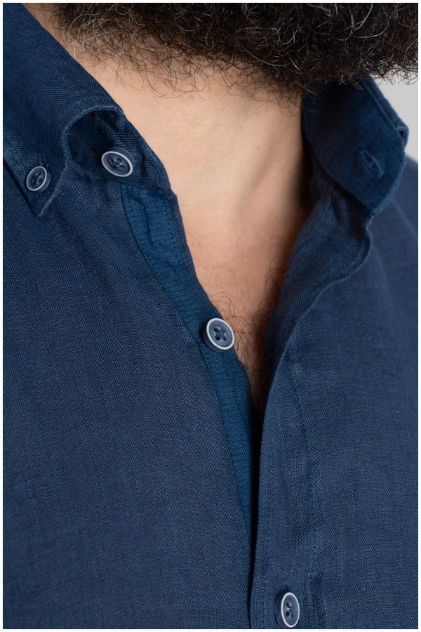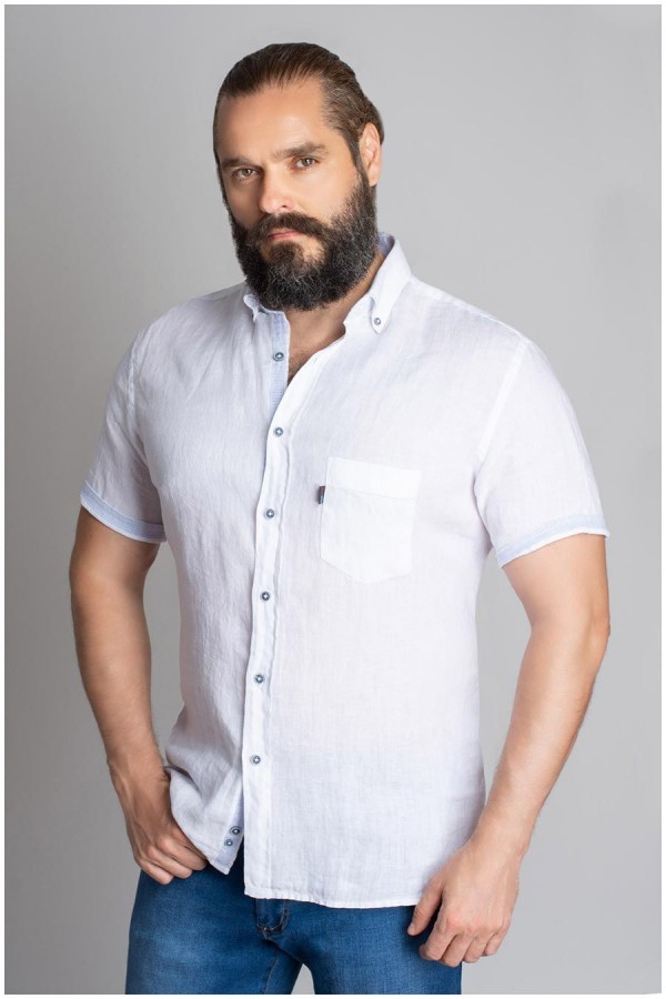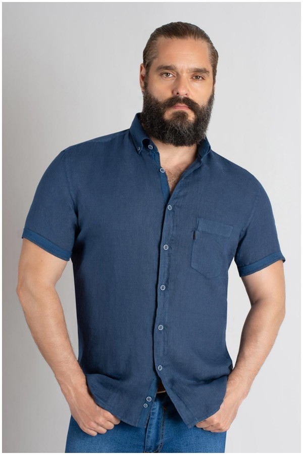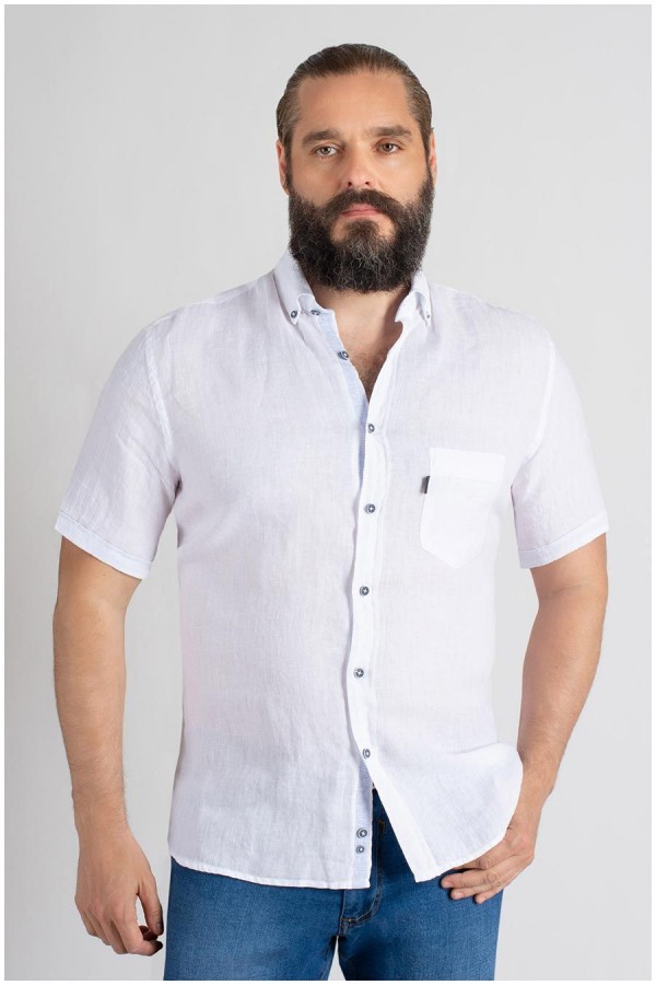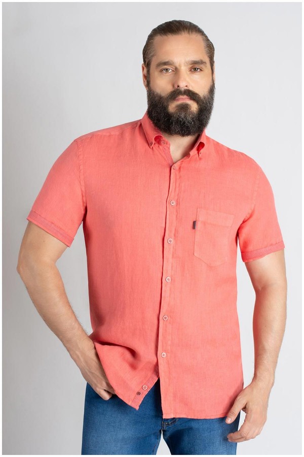 100% Linnen vrijetijdsoverhemd korte mouw van Plusman