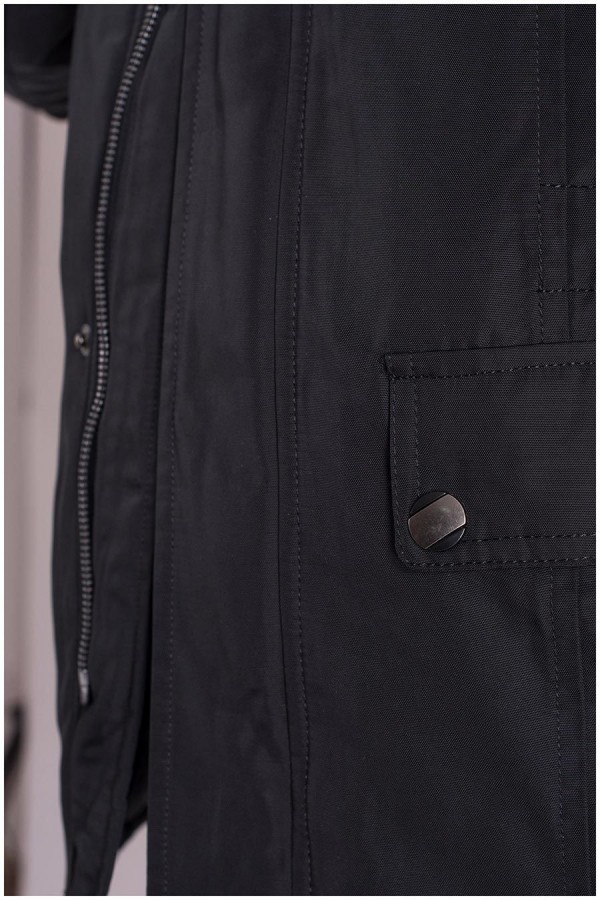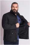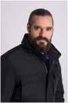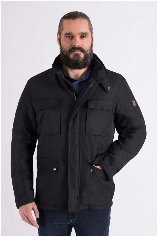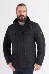 Microvezeljas van Plus Man. Deze winterjas heeft een afritsbare capuchon en is voorzien van zeer veel zakken zoals twee klepzakken op de borst, 2 klepzakken met drukknopen vooraan en een binnenzak met rits. Sluiting aan de voorkant met rits en extra drukknopen.