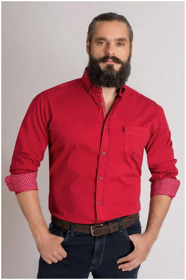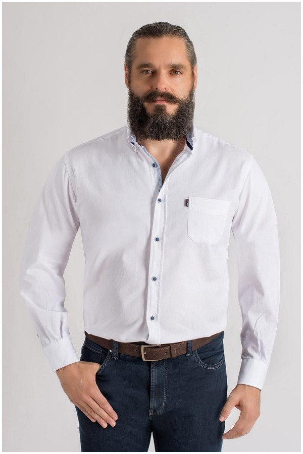 Extra lange mouw effen vrijetijdsoverhemd van Plusman gemaakt van 100% katoen.