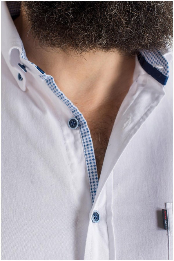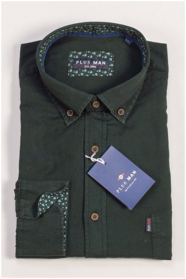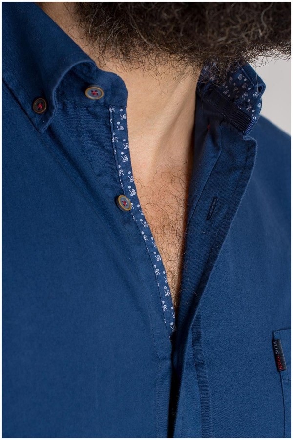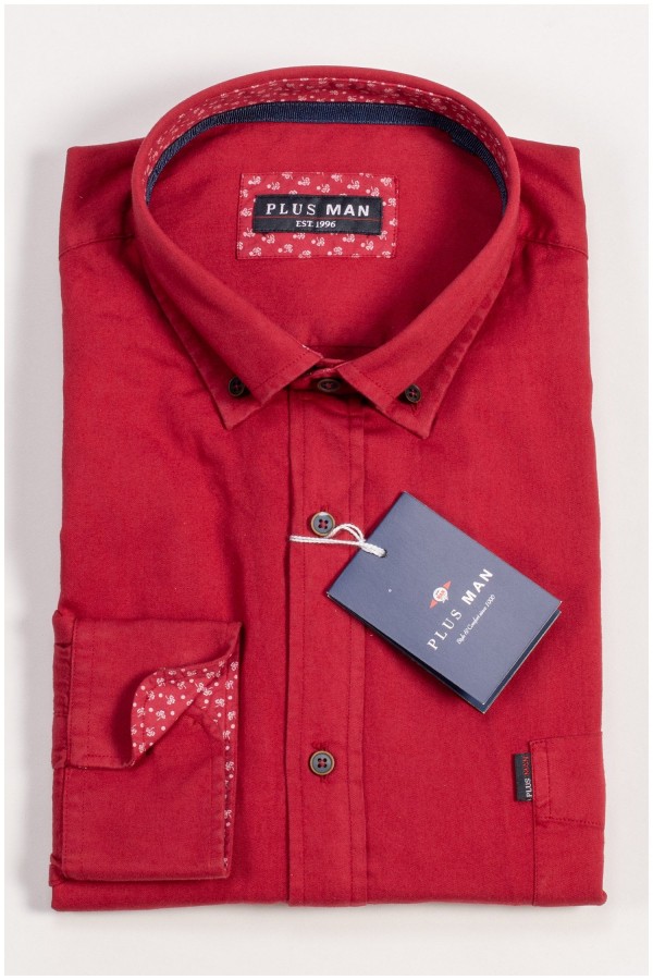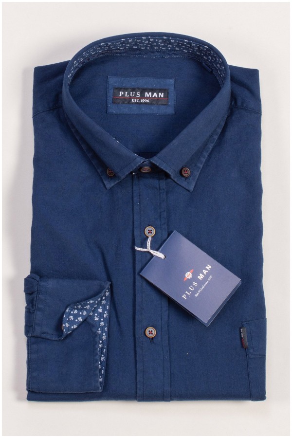 100% katoenen uni casual overhemd met extra lange mouwen van het merk Plus Man. Dit mouwlengte 7 shirt is gemaakt van hoogwaardige poplin kwaliteit. De button-down kraag is aan de binnenkant voorzien van een contraststof die ook wordt gebruikt aan de binnenkant van de manchet en op de knopenlijst. Borstzakje op de linkerborst. Manchet met dubbele knoop.