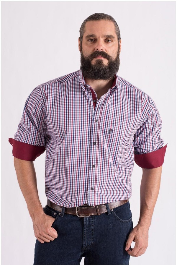 Geruiten casual shirt van het merk Plus Man met extra lange mouwen en extra ruglengte. Het overhemd heeft een button-down kraag en borstzakje. De binnenkant van de kraag, knopenlijst,en de binnenkant van de manchetten zijn voorzien van een uni contrastkleurige stof.