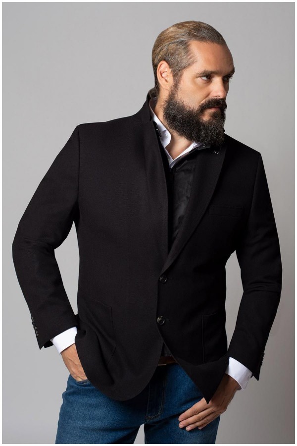 Colbert van het merk Plusman met tweeknoops sluiting. Het jasje heeft daarnaast een extra front met ritssluiting, welke uitneembaar is door middel van een rits. Zo kan met dit colbert twee heel verschillende looks worden gecreëerd. Verder heeft dit colbert een borstzakje en diverse handige binnenzakken. Gemaakt van een mix van viscose en polyester.