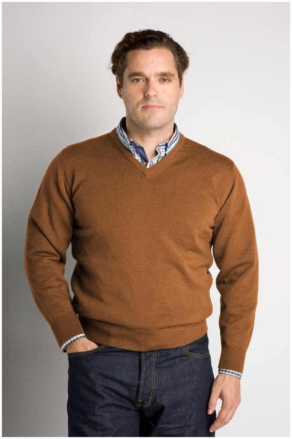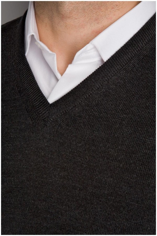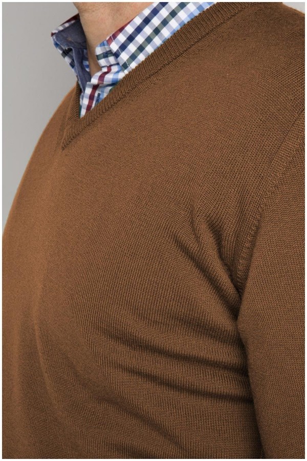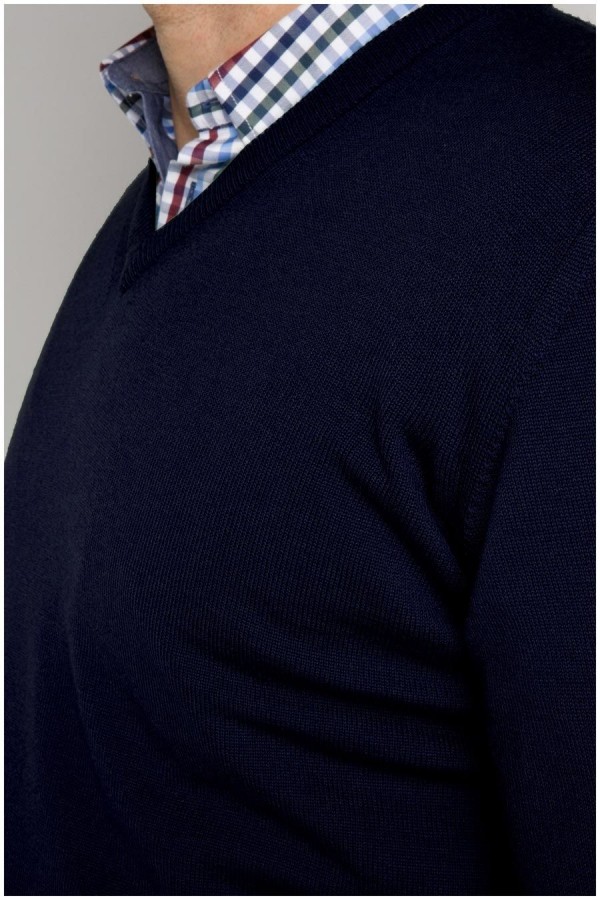 Uni pullover met V-hals van het merk Plus Man. Deze trui is gemaakt van 50% wol en 50% acryl. Anti-pilling.